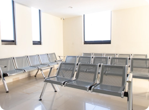 Sala de espera confortable con acceso a baños y wifi.